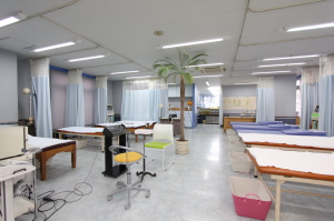10床以上あり、ベッドの間隔も余裕を持たせています。院内には